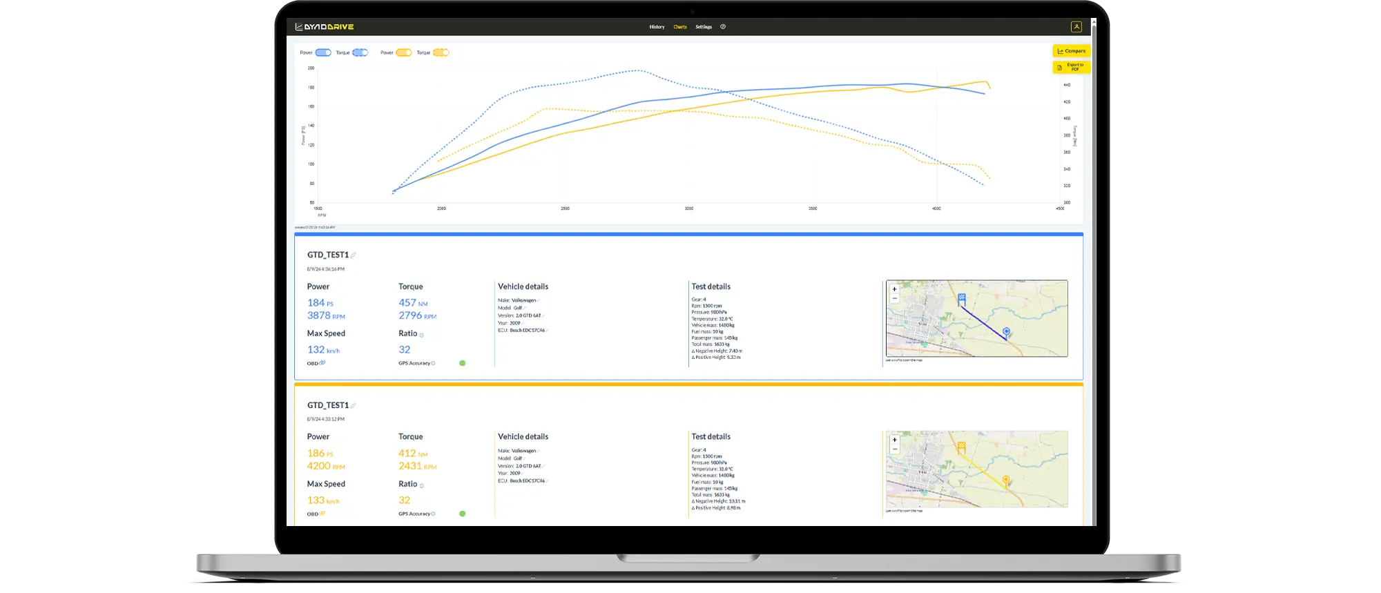 It is important to state this clearly: On the road there are variables (environment, conditions, driving style). DynoDrive is not designed to replace a rolling road.