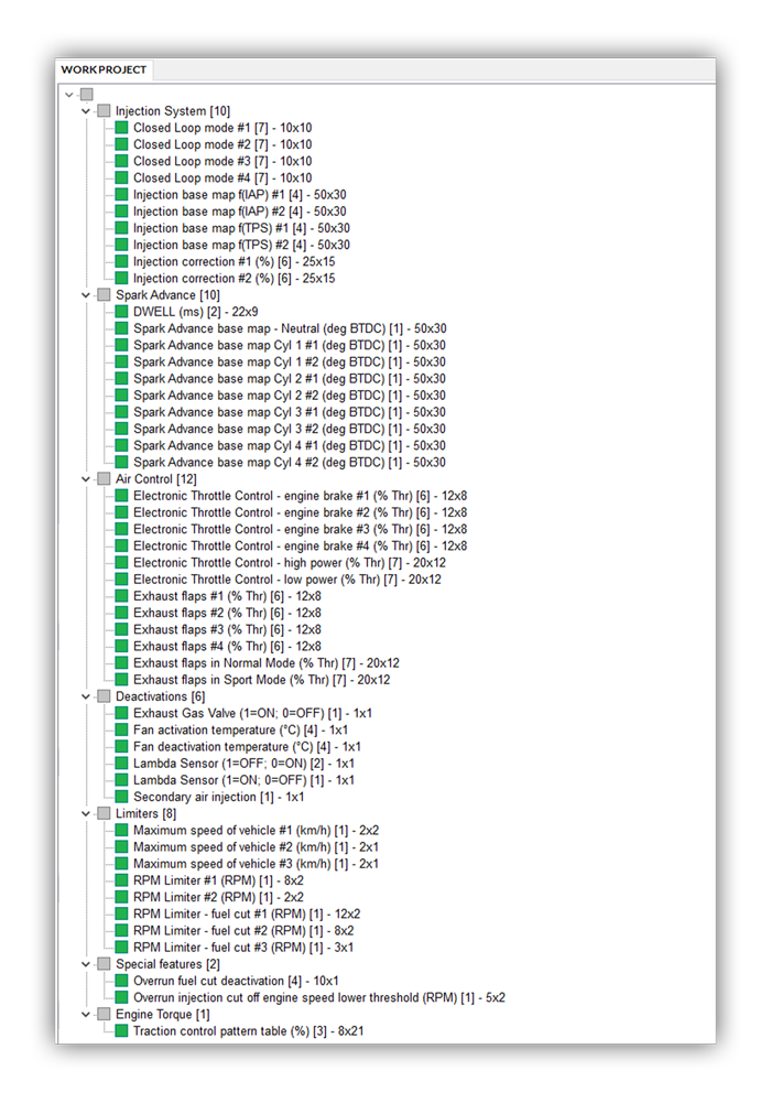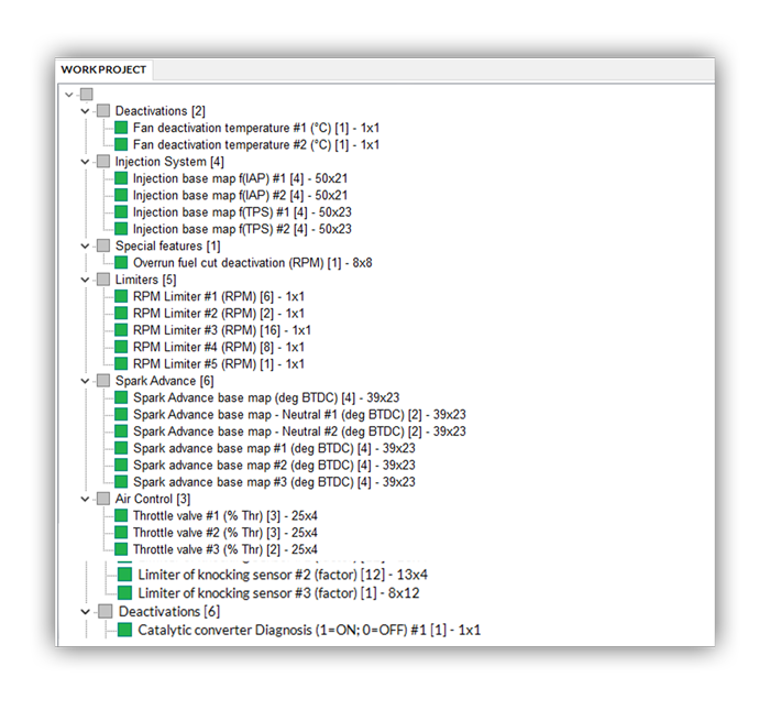 Fuel and ignition maps have been completely reorganized to offer a cleaner layout, making it easier to locate and modify specific parameters. Each map is directly linked to the individual cylinders, allowing precise and targeted adjustments of fueling and ignition timing.