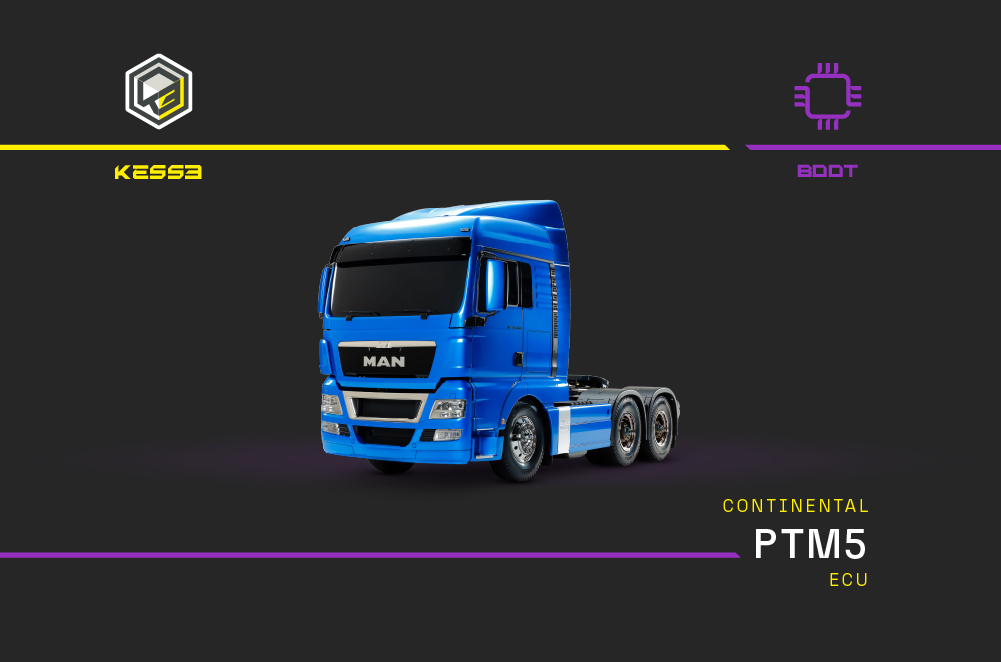 Read and write in BOOT mode the Continental PTM5 ECU installed on MAN TG-S and TGX trucks produced since 2013.
